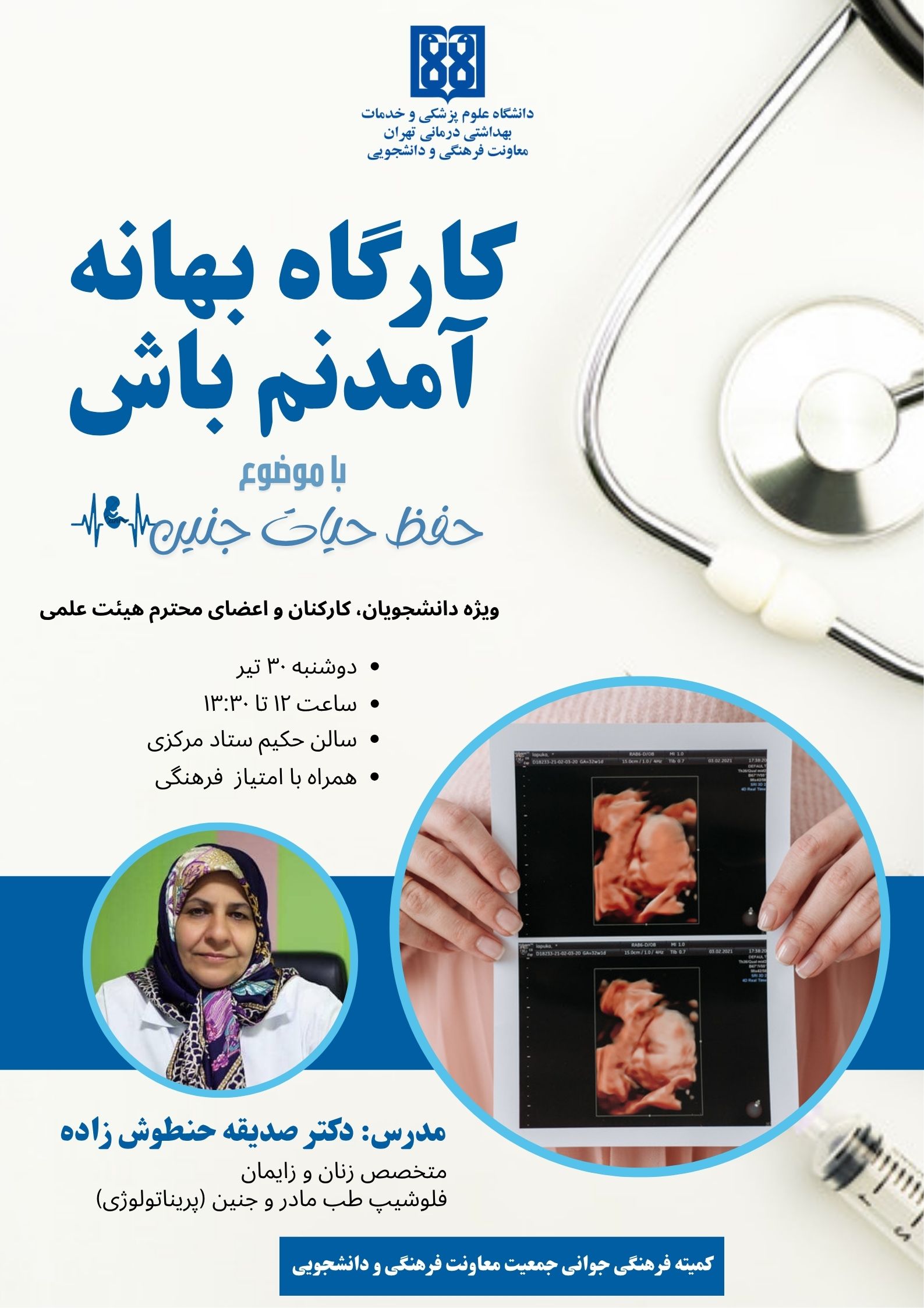 معاونت فرهنگی و دانشجویی دانشگاه علوم پزشکی تهران | کارگاه تخصصی «بهانه آمدنم باش» با محوریت حفظ حیات جنین در دانشگاه علوم پزشکی تهران برگزار می شود