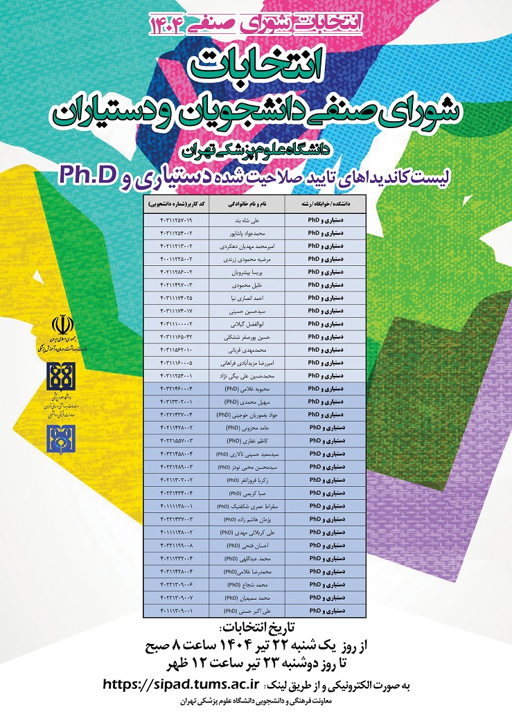 برای دریافت پوستر لیست کاندیداهای تایید صلاحیت شده دستیاری و Ph.D ، اینجا کلیک کنید.