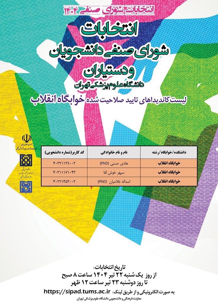 برای دریافت پوستر لیست کاندیداهای تایید صلاحیت شده خوابگاه متاهلین، اینجا کلیک کنید.