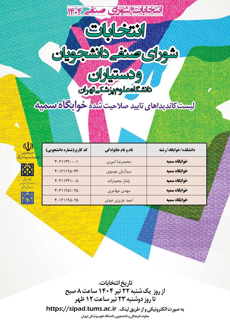 برای دریافت پوستر لیست کاندیداهای تایید صلاحیت شده خوابگاه سمیه، اینجا کلیک کنید.