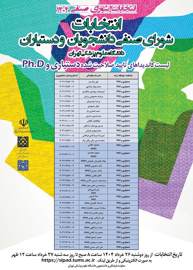 برای دریافت پوستر لیست کاندیداهای تایید صلاحیت شده دستیاری و Ph.D ، اینجا کلیک کنید.