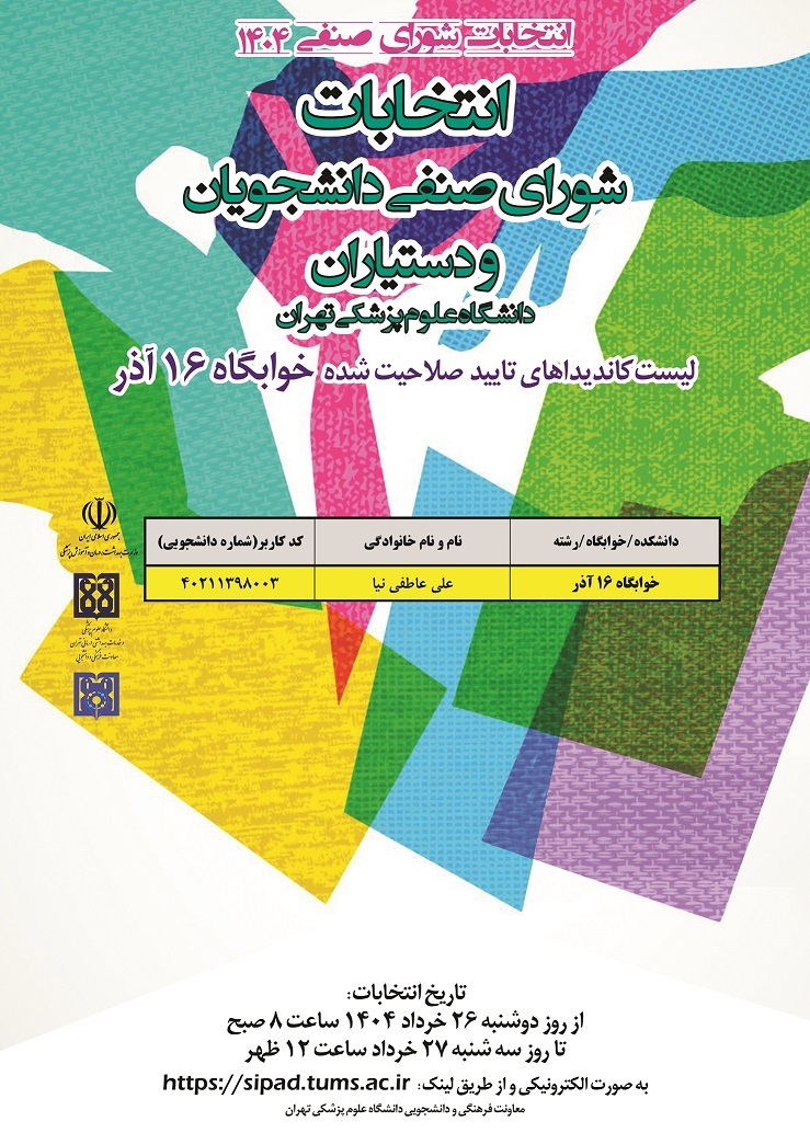 برای دریافت پوستر لیست کاندیداهای تایید صلاحیت شده خوابگاه 16آذر، اینجا کلیک کنید.