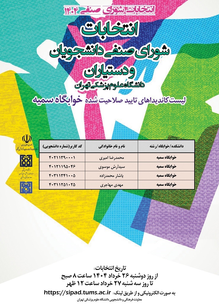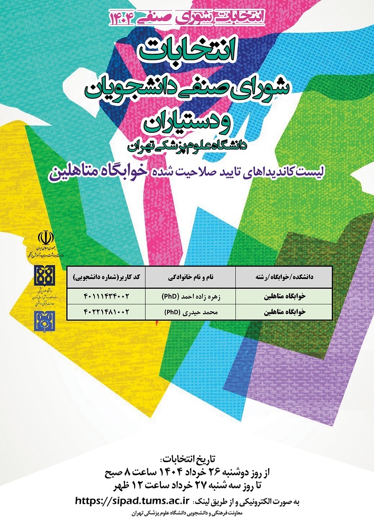 برای دریافت پوستر لیست کاندیداهای تایید صلاحیت شده خوابگاه متاهلین، اینجا کلیک کنید.