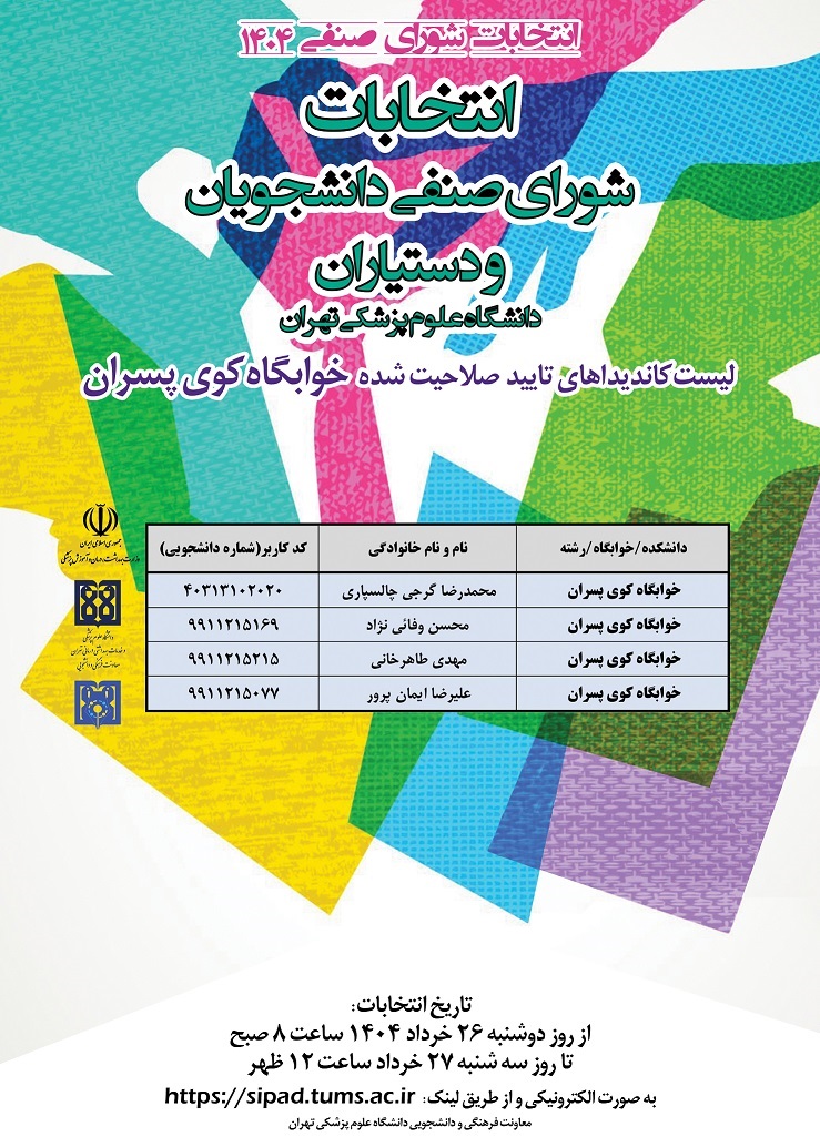 برای دریافت پوستر لیست کاندیداهای تایید صلاحیت شده خوابگاه کوی پسران، اینجا کلیک کنید.