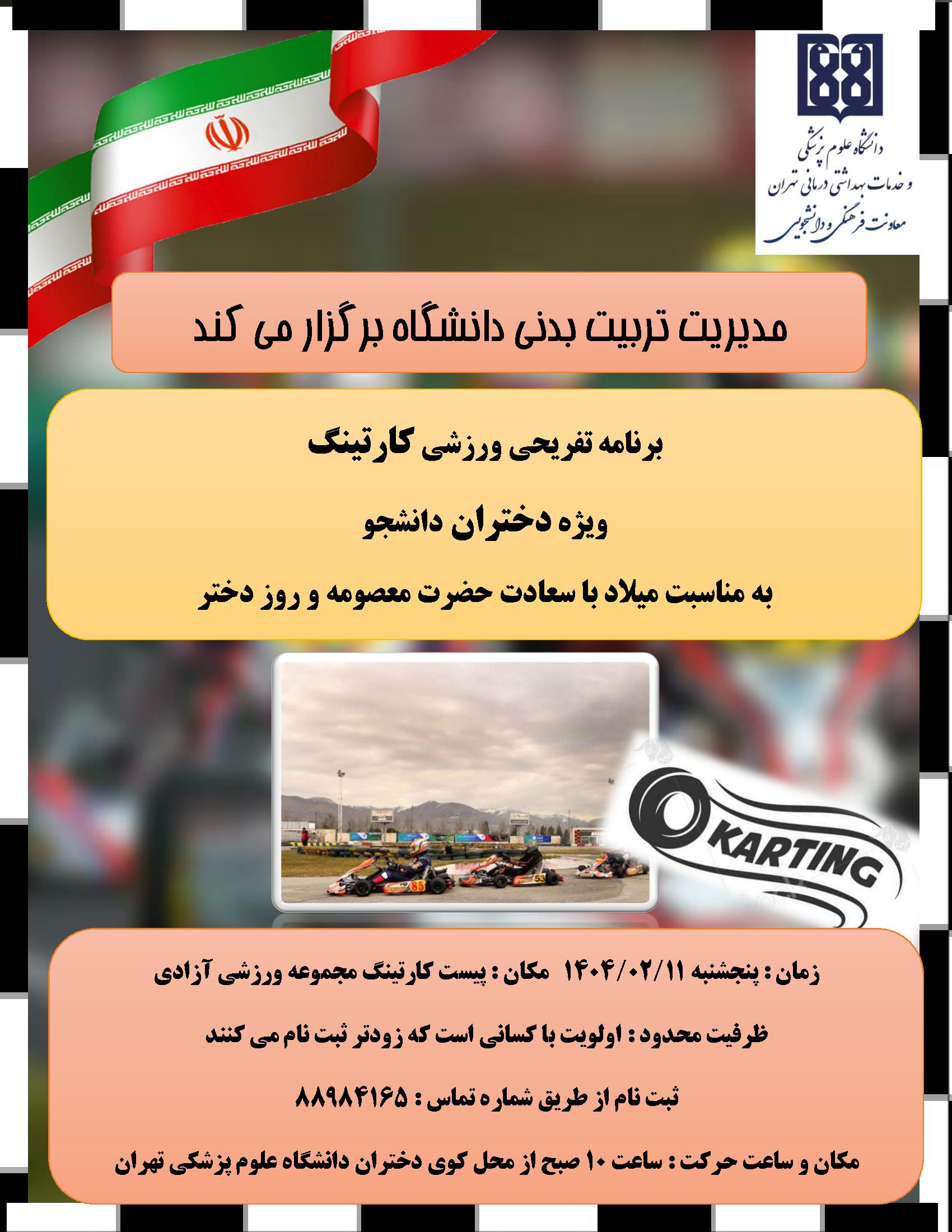 فراخوان برگزاری تور کارتینگ ویژه دانشجویان دختر دانشگاه علوم پزشکی تهران