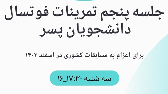 برای دریافت پوستر پنجمین جلسه تمرین تیم فوتسال، اینجا کلیک کنید.