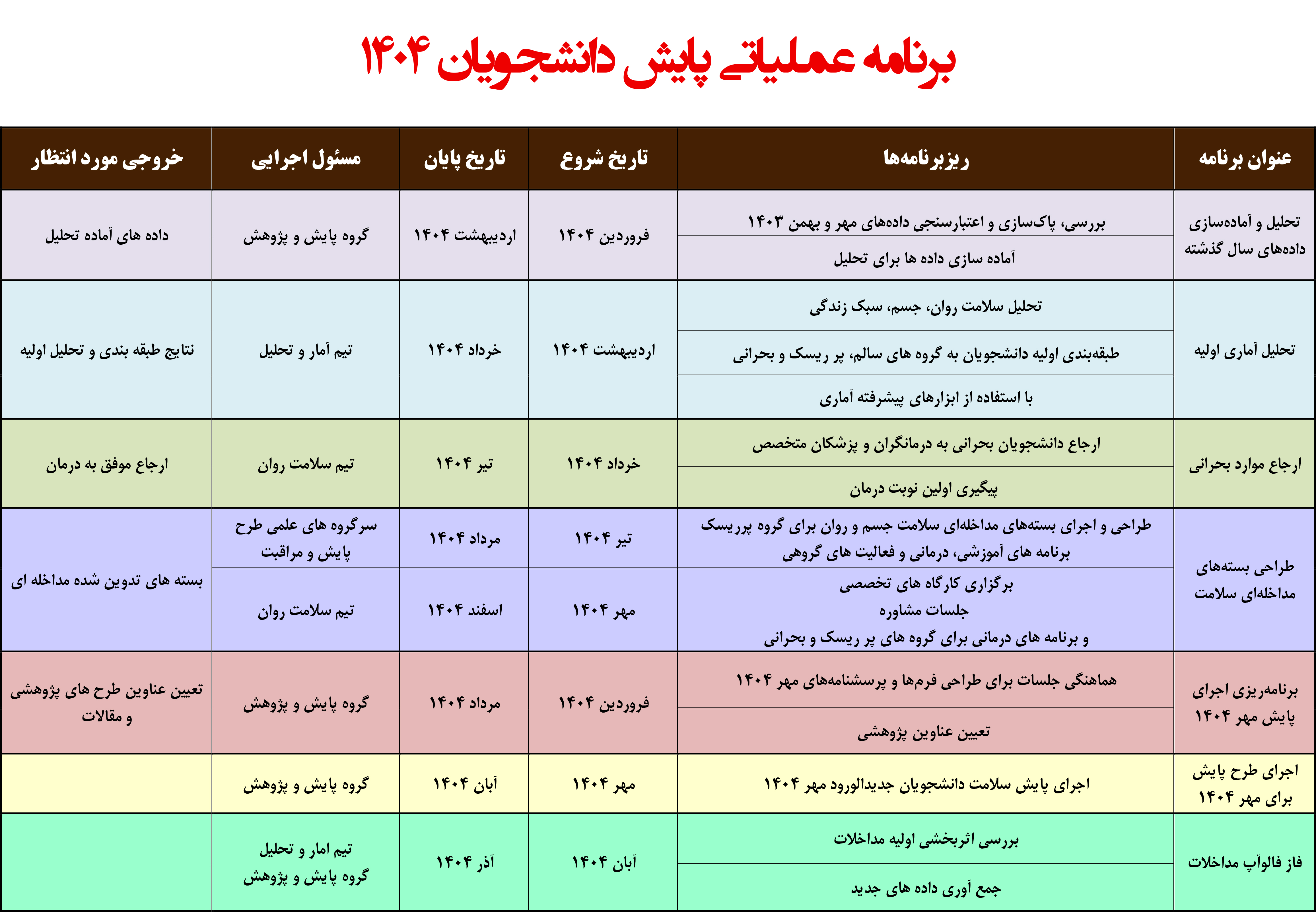 معاونت فرهنگی و دانشجویی دانشگاه علوم پزشکی تهران | برنامه عملیاتی