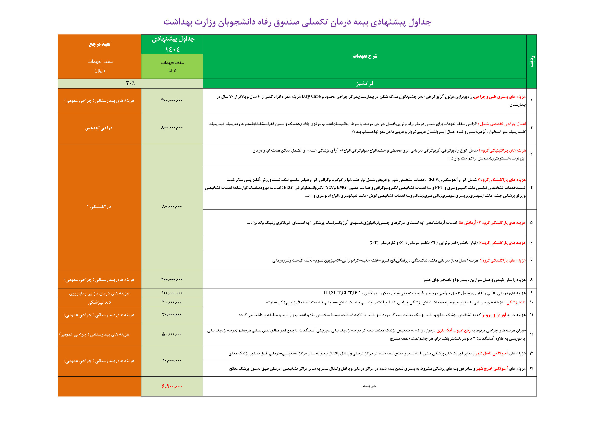 وام بیمه تکمیلی دی تسهیلات بیمه درمانی تکمیلی به دانشجویان مقاطع دکترای تخصصی، تخصص و فوق تخصص دانشگاه ها و دانشکده های علوم پزشکی سراسر کشور اعطا می شود. برای کسب اطلاعات بیشتر و مشاهده تعهدات بیمه درمان تکمیلی فایل های راهنما را مطالعه فرمایید. |