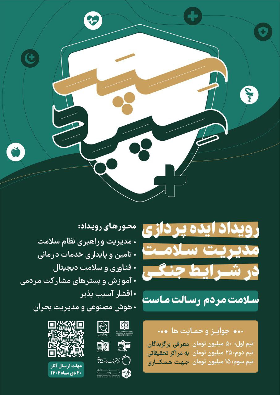فراخوان ملی ایده پردازی و نوآوری سپر سپید با محور مدیریت نظام سلامت در شرایط جنگی و با هدف تقویت تاب آوری نظام سلامت منتشر شد.