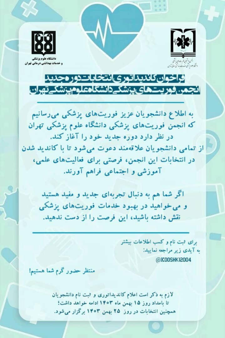 فراخوان نامزدی دوره جدید انتخابات انجمن علمی فوریتهای پزشکی دانشگاه علوم پزشکی تهران