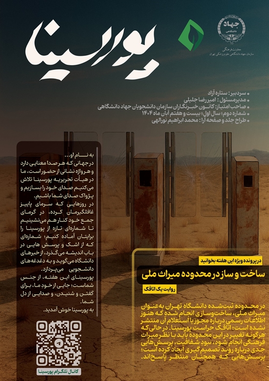 نشریه پورسینا/شماره دوم/ بیست و هفتم آبان ماه 1404 در جهـانی کـه هـر صـدا معنایـی دارد و هـر واژه نشـانی از حضـور اسـت، مـا در هیــأت تحریریـه پورسینــا تلاش می کنیــم صــدای خــود را بســازیم و پـژواک صــدای شــما باشــیم. کد خبر : 314462 کپی کلمات کلیدی نشریه_پورسینامعاونت_فرهنگی_و_دانشجویینشریه_دانشجویی