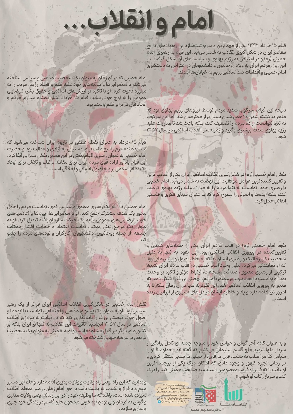 قیام پانزده خرداد 1342 یکی از مهم ترین و سرنوشت سازترین رویدادهای تاریخ معاصر ایران در شکل گیری انقلاب به شمار می آید. این قیام به رهبری امام خمینی (ره) و در اعتراض به رژیم پهلوی و سیاست های آن شکل گرفت. در این روز، مردم ایران به ویژه روحانیون و دانشجویان در اعتراض به دستگیری امام خمینی و اقدامات ضد اسلامی رژیم به خیابان ها آمدند.